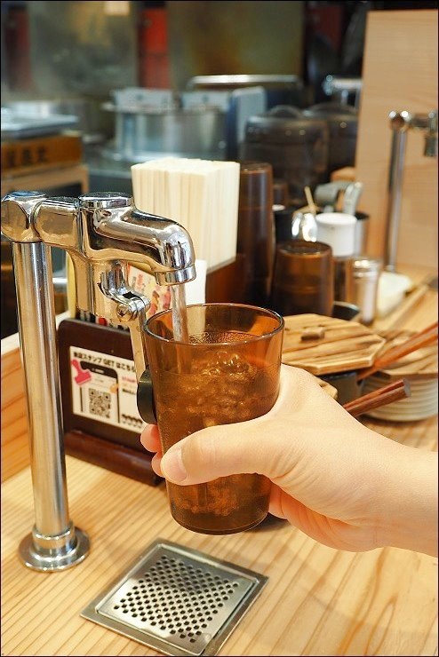 吧檯座位前有自動飲水器,冰開水自行取用。