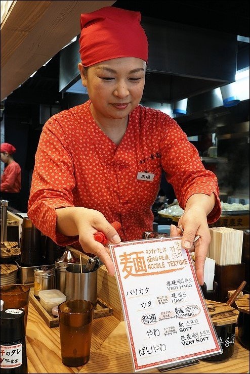 點拉麵的話,店員會詢問客人麵條喜歡的軟硬度(五種軟硬度),視個人喜好來選,我個人都是點很硬,拍完照吃剛剛好。