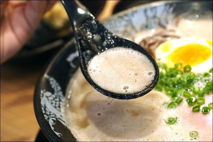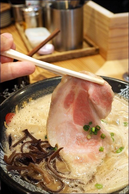 元祖泡沫豚骨拉麵,這碗湯頭有好多泡泡,豚骨湯頭要煮成這樣,可是需要長時間及真功夫下去熬煮才辦的到,店長說,要能站上一幸舍廚房下麵煮湯得花上五年的學習才行,日本職人精神就是這樣,光一個步驟就要學好幾年。
