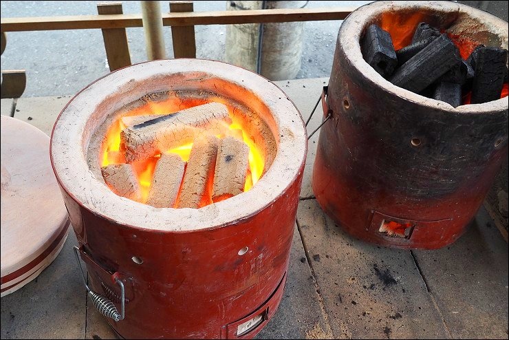 店門口正在燒跟烤肉用的碳火,用碳烤出來的烤肉才有迷人的碳香味。