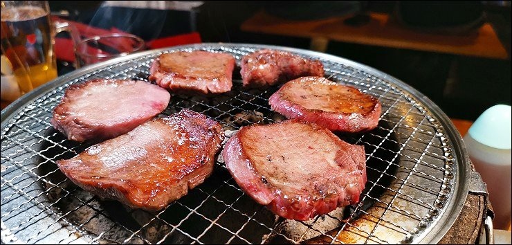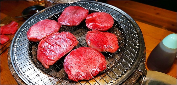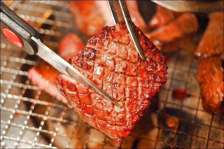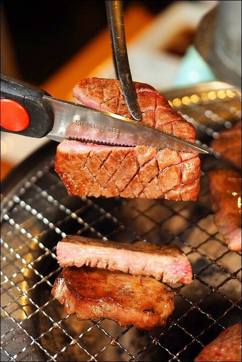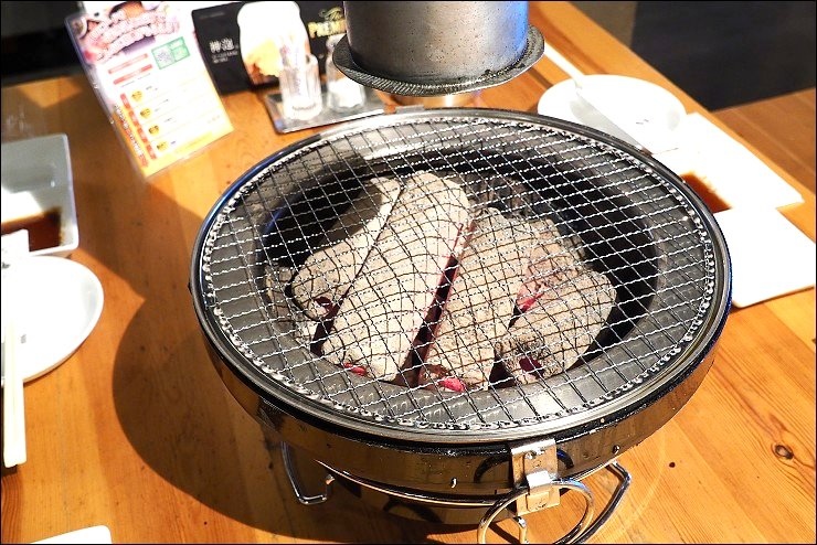 厚牛舌剪一剪也快舖滿整個烤網,份量很夠吔,這牛舌走超級厚片路線,吃起來不是薄脆好入口,而是很口感紮實,我有喜歡,不過牙口不好的朋友可能要多咬幾下!