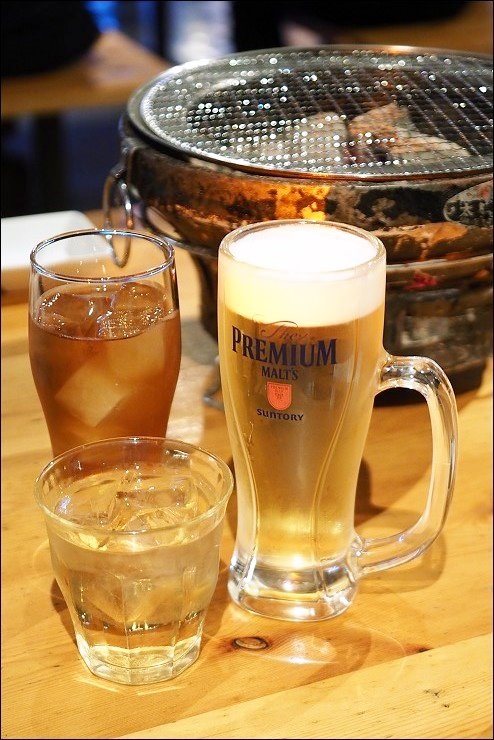 日本餐廳有個不成文慣例,就是先點飲料,再慢慢看其他餐點要點什麼。吃燒肉就是要配酒啊!!生啤酒最基本,我自己本身愛喝梅酒加冰塊囉。(警語:喝酒有礙健康)