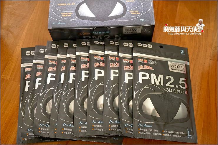 一盒20片計10包,1包二入,有沒有覺得黑色口罩有點蝙蝠俠的味道,而且這幾年黑口罩好流行,明星裝低調都戴黑口罩,男性同胞想耍酷也可以選黑的,不過我家妹妹喜歡白色的口罩,我自己偏愛粉藍色的。