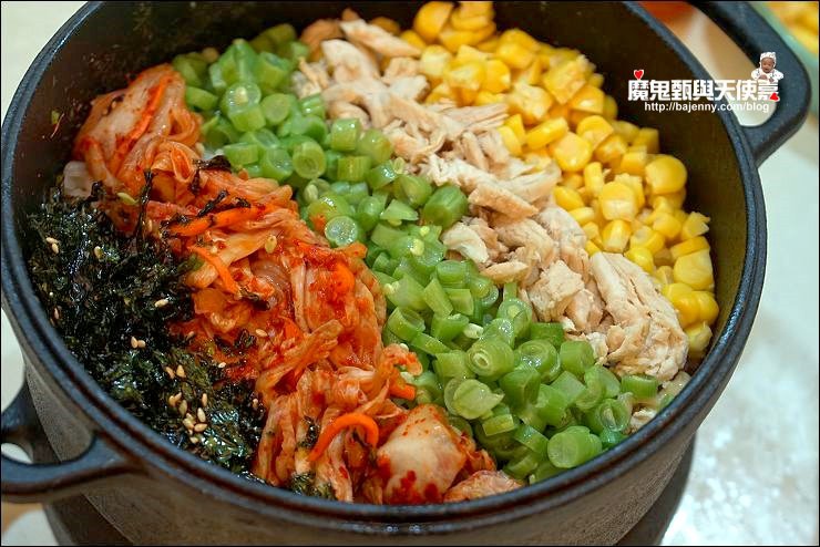 最近的天氣都是白天艷陽高照,之後又來一陣打雷暴雨的,這種又溼又悶的時候就是鐵鍋拌飯上場的好時機,鐵鍋煮飯水滾後轉小火15分,悶15分,開大火燒鍋兩分鐘,就有脆脆的鍋巴喔~~最後記得加顆蛋,讓蛋液恣意橫流更是極品啊~~