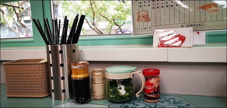 桌上有醬油、胡椒及蔥花隨個人喜好加,我最愛撒些胡椒粉提味!