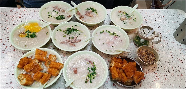富記粥品的瑤柱粥底是師父每日早上4時生米現煮熬制的,生滾出熱騰騰的傳統美味。我們一行人點滿桌,看了爽度很高。