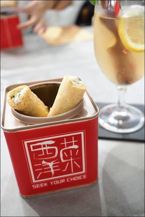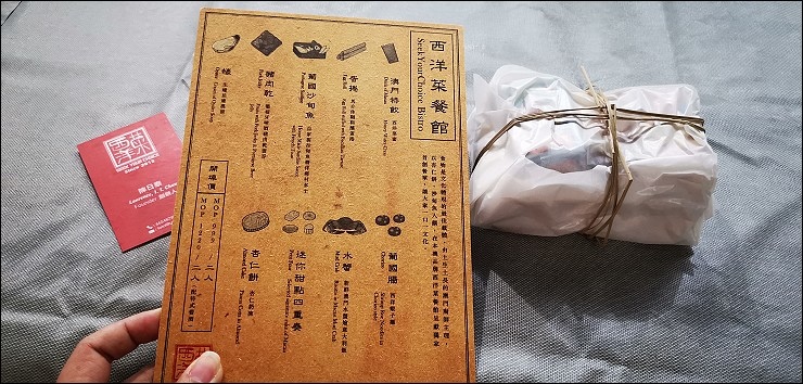 我們今天午餐是西洋菜餐館的雙人套餐MOP 999/2人、MOP 1,220/2人,除了制式的菜單之外,預約時可以告知餐飲需求與價位,店家可提供客製化菜單。用餐前會送一包專屬手信小禮,用餐時透過多道創義嶄新樣貌的菜式展示傳統、文化與歷史,讓大家從舌尖遊澳門。