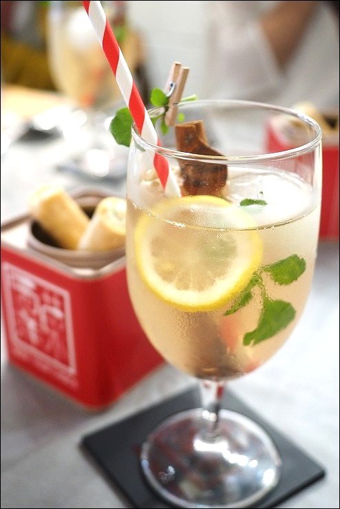 飲料先上!這杯西洋菜蜜是定居澳門的葡萄牙人的傳統飲料,以西洋菜葉蜜為基底,加入蘋果汁、白酒及丁香等香料,喝起來清清淡淡,沒有什麼生菜味,店家有放一根肉桂在裡頭,建議不要放太久,不然肉桂肉味會太重,搶掉西洋菜蜜的清爽。