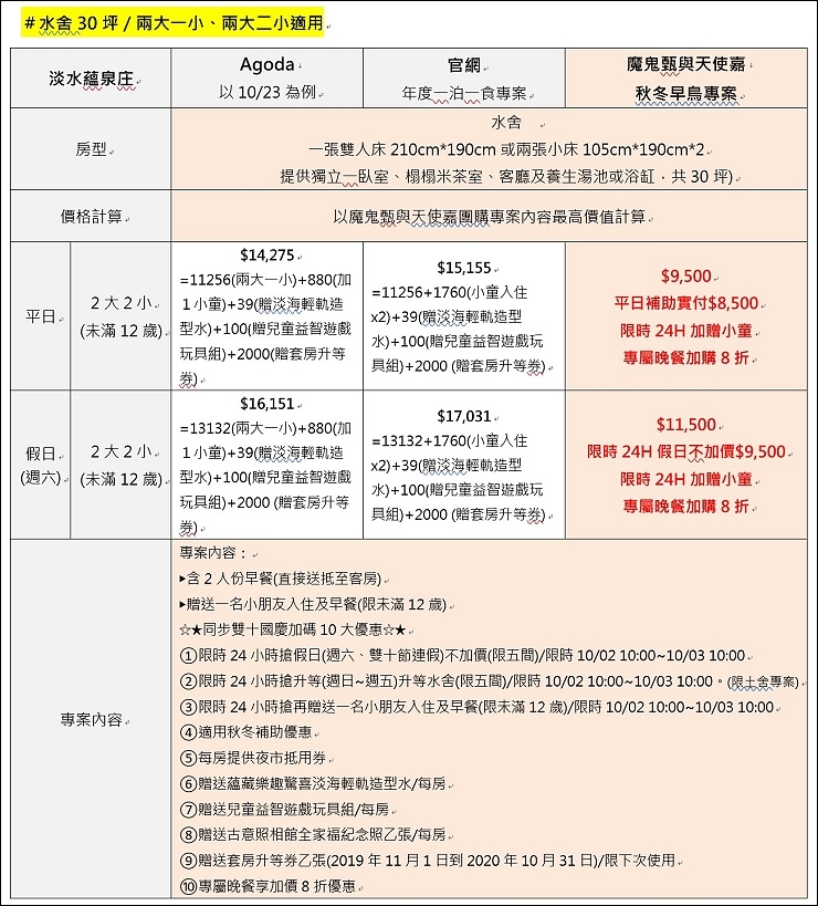 ★限時24小時搶升等:限時10/02 10:00~10/03 10:00週日~周五升等水舍(達30坪)/限五間。