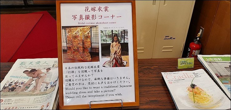步行至附近的山王俱樂部,山王俱樂部曾是酒田代表性的老鋪料亭,建於明治28年,現為國家有形文化財。傘福是酒田市獨特的女兒節吊飾,傘福是在大傘下垂掛各種日本和布手工作成的掛飾,傘下的小飾品象徵百寶,保佑孩子平安幸福,每個小吊飾造型不同,都是對女兒的愛。酒田當地的婦女會為了保存傳統風俗,在俱樂部內教授如何製造傘福,傘福成為酒田的觀光特色之一。有興趣的朋友也可以參加傘福制作體驗,當天可以報名,費用是一千日圓,大概需要一小時的時間體驗。另外也有免費的日本花嫁衣裳試穿,同行友人一穿上秒變待嫁美嬌娘。
