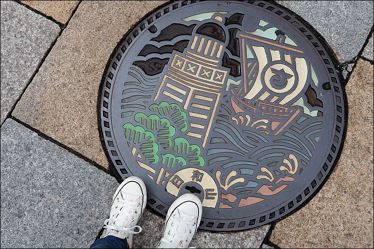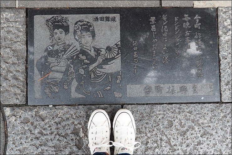 隔天我們一早就來到酒田市區,酒田市在江戶時代因紅花交易而繁榮興盛的港都,甚至有「西有堺港(大阪),東有酒田」的美稱。歷代富商們所構築的湊町之歷史和文化傳統,至今仍在市內生生不息。連地上的水溝蓋都很特別。