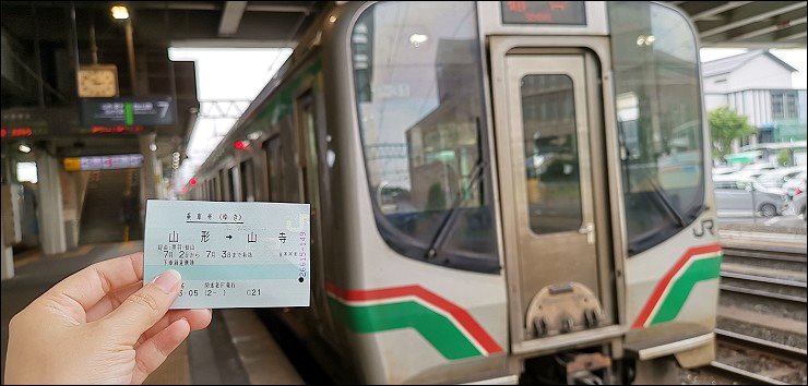 來到山形,山寺自然是必訪景點之一啦。我們從山形站坐坐JR仙山線往仙台方面的車班來到山寺駅,車票山形山寺來回是480日圓。東北地區的列車都有手動開門的裝置,本想說車都到站了怎麼沒開門,原來是乘客上下車要自己按按鍵才能開門進出。