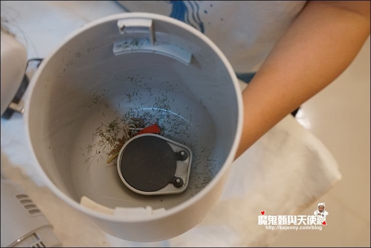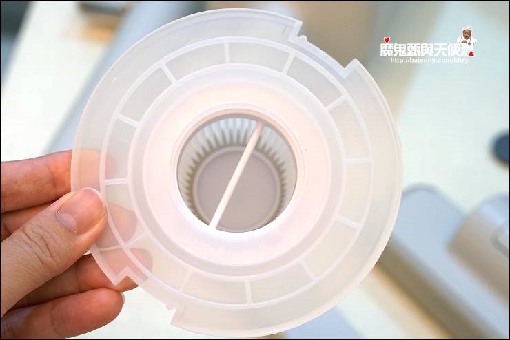 輕輕一轉就是清濾網的地方,基本上將馬達分開的下面這一段通通都可以用水去沖去清,不過一定要晾乾才能再繼續使用,所以有第二個濾網備用很重要!!