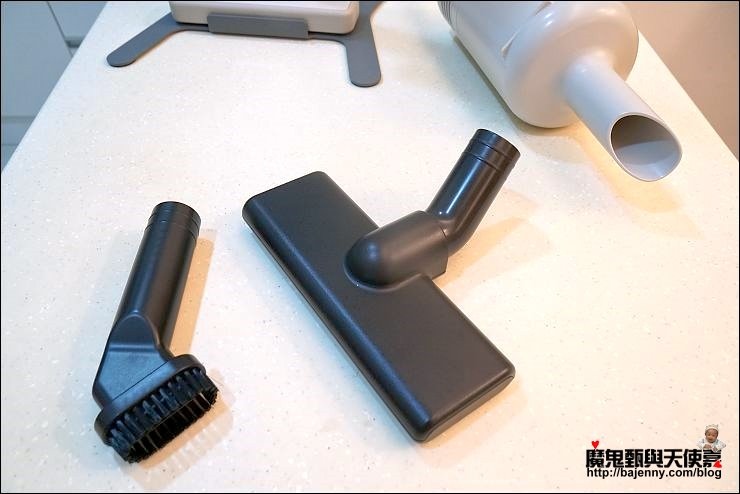 如果想要更全面有層次的打掃,所謂工欲善其事必先利其器,可以加購另外兩種吸頭:棉被吸頭+毛刷頭(照片中的黑軟管沒有提供喔),可以吸床墊棉被、電腦鍵盤螢幕,以達到360度全方位清潔,我自己覺得固定的吸頭專門吸固定的地方,會比較衛生乾淨。