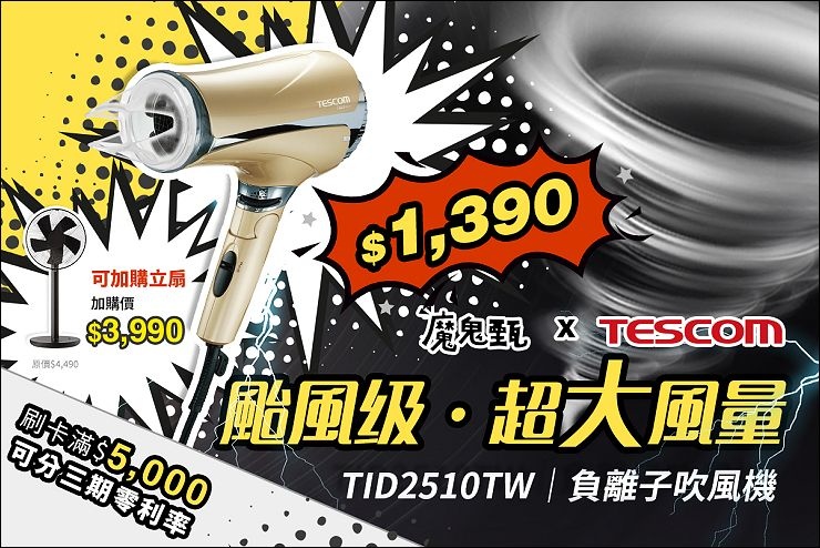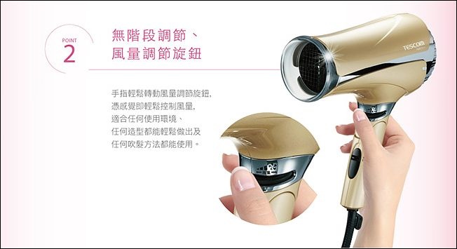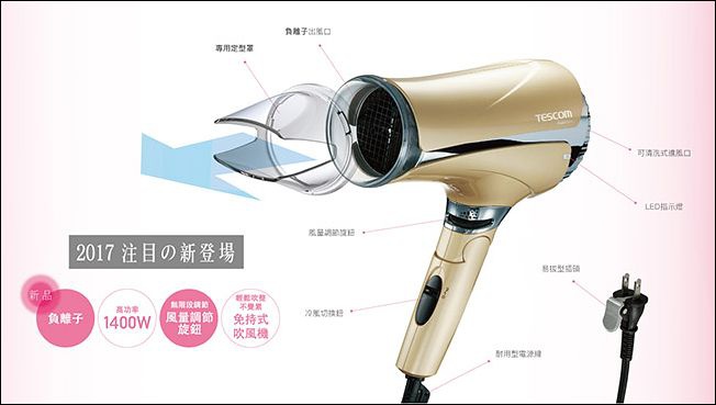 這個牌子是世界第一支負離子吹風機,聽說Tescom每一支都有負離子,然後tid2510是唯一一個號稱颱風級風量!!