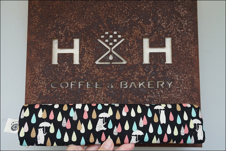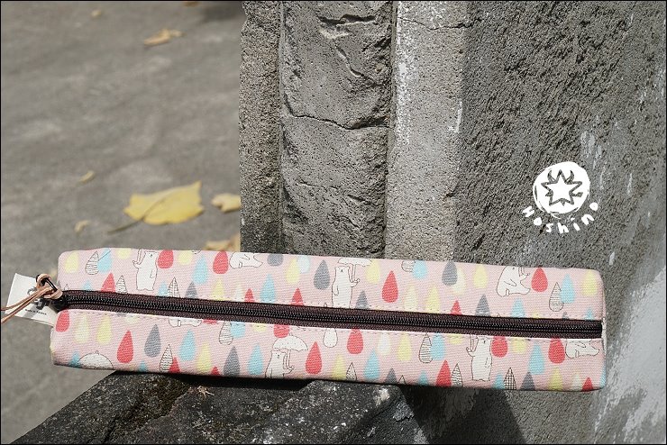 裡面配的是米色防水布,外面配的是黑色尼龍拉鍊,黑底搭配彩色雨滴真的很搶眼,難怪姐妹相中這款布,這次多了粉色熊熊撐雨傘,一樣好卡哇伊~~