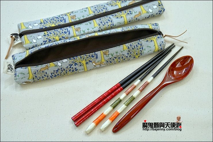 假日出遊媽媽包裡備個家庭筷套跟化妝包,不要再用免洗筷跟塑膠湯匙啦,一來東西好找,二來又環保,愛地球人人有責!大家一起來~~