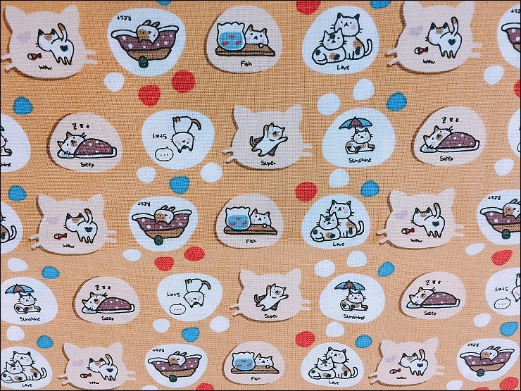 裡面配的是米色防水布,外面配的是黑色尼龍拉鍊,我自己雖然不是貓咪控,但連我都對這款貓咪布情有獨鍾,甚至一拿到成品立馬再追加這款布
