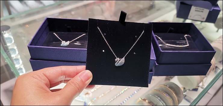 因為工作採訪的關係,比較有機會需要出國,還沒上飛機在免稅店就逛起來了,之前一直看Swarovski施華洛世奇代表性的天鵝項金鏈,竟然出了新款白金色配湛藍漸層,藍色漸層閃亮的天鵝項鏈讓我一看就愛上,施華洛世奇的鑽很閃亮,價格不會太高,戴起來又好看。