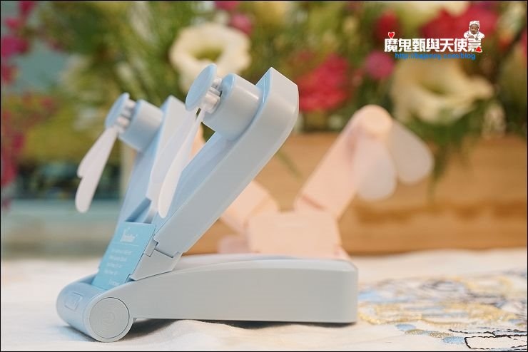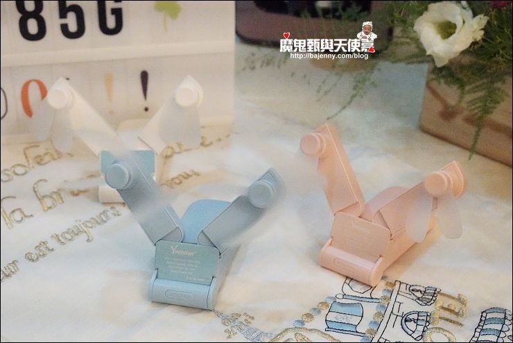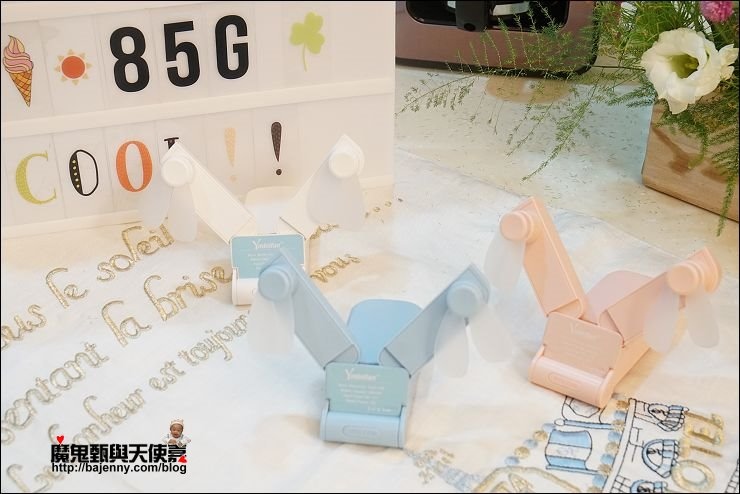 這台被妹妹稱作是變形金鋼的小風扇,只有手機大小,顏色好馬卡龍(共三色),兩段風力,好收納方便攜帶,一台只有85公克(比之前的97公克晴雨傘還要輕)!!我的隨身小包從此又多一位有力的新朋友,逛夜市大殺四方就靠它啦~~