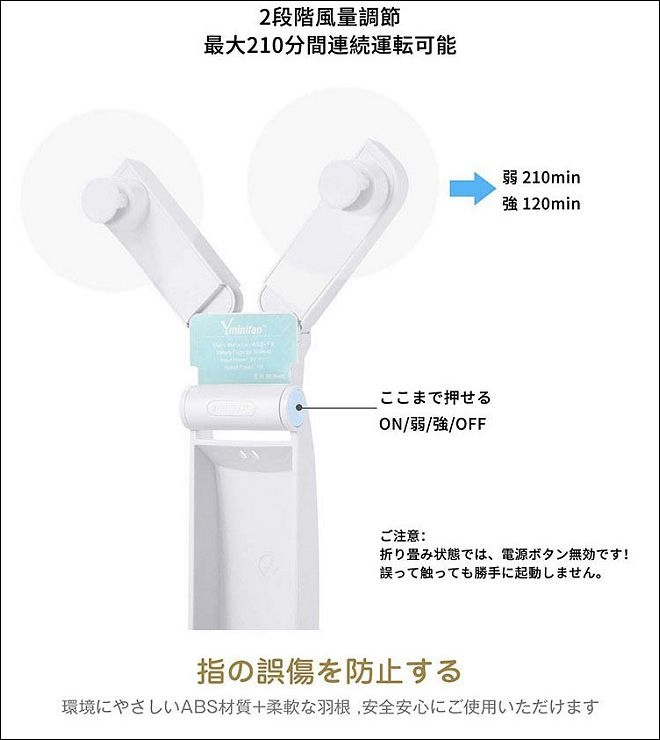 重點是摺疊收納,小到可以裝進口袋,然後使用柔軟扇葉,矽膠材質不傷手,雖然日本官網強調扇葉很安全,我們也確實實驗過真的不會痛(只是一開始心裡會有點害怕,哈),最後我跟妹妹還玩如何暫停最酷XD,但社長還是比較保守的建議7歲以上的孩童使用較為安全!!