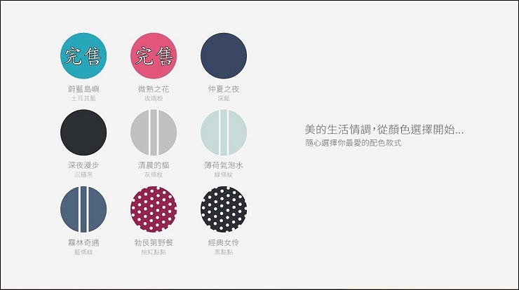 五個新花色都不錯,其中藍條紋最上相(辨視度高),但乾媽說有點像公務員XD
