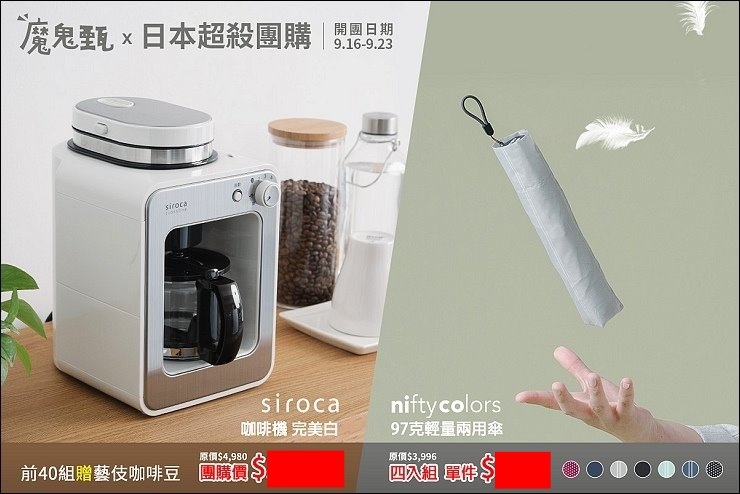 暨白色氣炸鍋、白色吸塵器/電風扇、白色空氣清淨機之後,更厲害的白色咖啡機來了!白色家居就是おしゃれ~(時髦),這台聽說在日本台灣都賣的嚇嚇叫!最新出的完美白還是台灣限定喔,擺在家裡任何一個地方都顯眼時尚,尤其一鍵全自動,從研磨、悶蒸到滴煮咖啡,一指搞定!直接放豆子放進去不用再先磨,獨特的悶蒸功能係模擬職人手沖咖啡的口感,讓現磨咖啡能充份的釋出咖啡原味,讓咖啡口感加倍升級,難怪連每天都必須喝咖啡才會醒的姐妹都說這台煮出來的咖啡hen可以喔~(她可是很挑咖啡的人),在開箱的時候剛好高雄姐妹上來台北開會有喝到,她馬上說要下單兩台當孝女買來自用及送給娘家爸爸,她阿爸還不可置信的說怎麼可能只賣三千多XD。本團還有加碼追加第三次的97g晴雨傘(不到兩顆雞蛋的重量),這次有五個新花色,上次沒搶到土耳其藍及桃紅色的朋友,這次動作要快!!本團499就免運費,還提供滿五千分三期免息刷卡的服務,另外本團商品97g抗UV晴雨兩用傘提供保固三個月、魔法口袋風扇保固半年、咖啡機保固一年的服務。