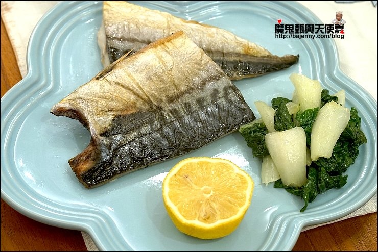 之前有跟團買氣炸鍋的人,這種魚片就超級方便的啦,我們預熱200度烤5分鐘就香噴噴上桌,只不過要放進氣炸鍋要切段,不然擺不進去…薄鹽的鹹度搭配白飯加上鯖魚的香氣,真的好好吃啊~