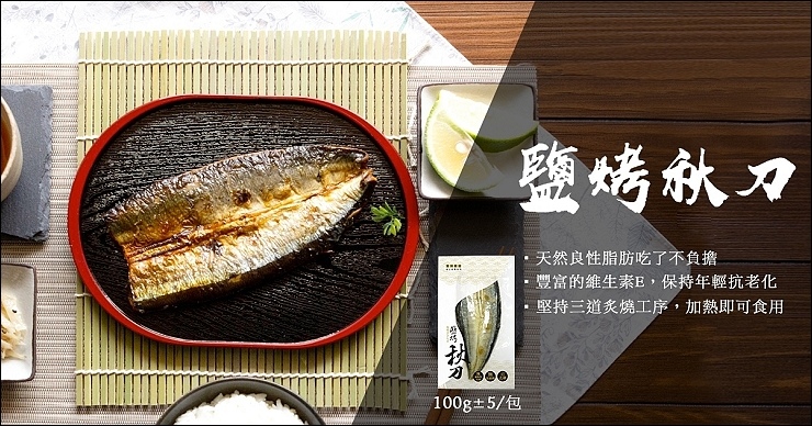 嚴選北太平洋海域的秋刀魚,堅持三道炙燒工序『秋刀魚』有豐富的維生素E,能保持年輕、抗老化!天然的良性脂肪,且魚油含量超過20%,吃了也不會覺得有負擔。