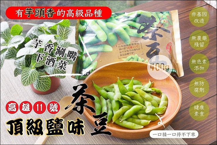 吃起來有淡淡的芋頭香氣,真的會讓您一顆接著一顆都停不下來,這款茶豆社長個人不建議做調味唷!就是要吃它原本的淡淡茶豆香味,工作燒腦的時候,最喜歡拿茶豆來陪伴了XD