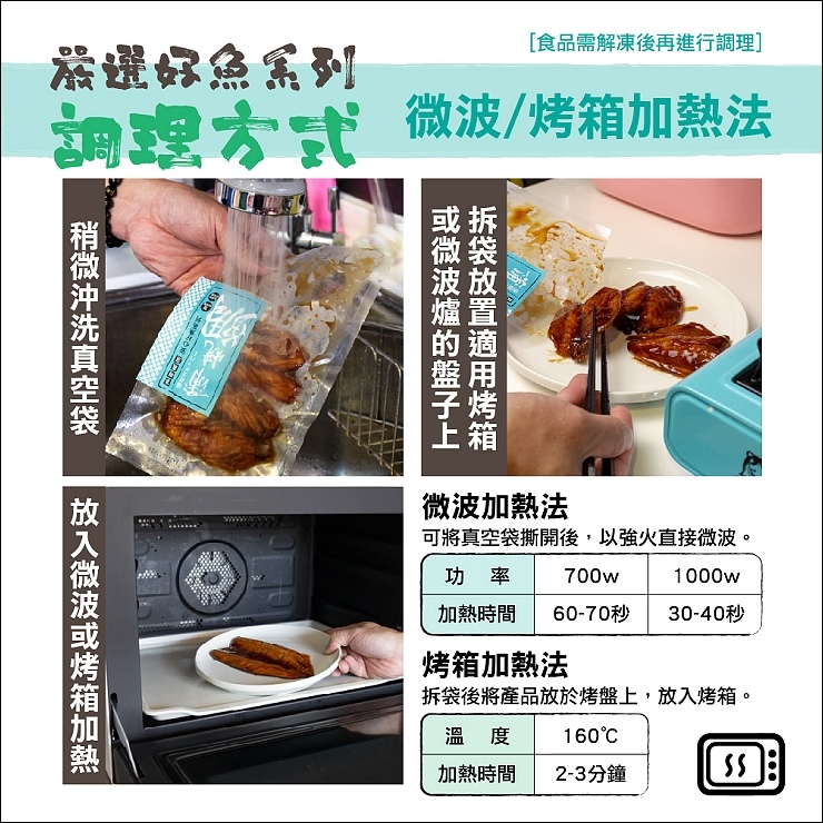 再次重申,可以使用微波爐、氣炸鍋、烤箱和隔水加熱唷(非供即食,應充分加熱)。