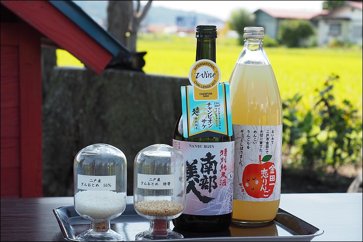二户市以特別栽培的大米“吟少女”为主要原料所造的清酒,夏季米收割後年底可釀成清酒,有柔和的果實芬芳,口味高雅,入口後微甜清爽,搭配生魚片很適合,一月初訪我們都有帶南部美人酒回家,這次再來當然不能錯過。在整片黃金稻穗田野間試飲,別有一番風味。