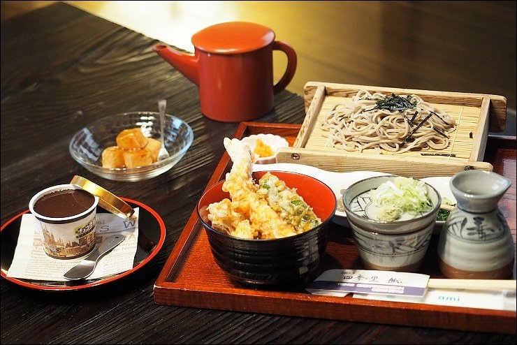 中午在四季之里餐廳用餐,這裡的蕎麥麵也很名,滿滿的一大盤蕎麥麵,加上天丼,現點現炸最好吃,麵衣薄薄的也不油膩,炸蝦很大尾吃起來爽度很高。(小提醒:午餐費用需自費,不包含在巴士一日遊內)