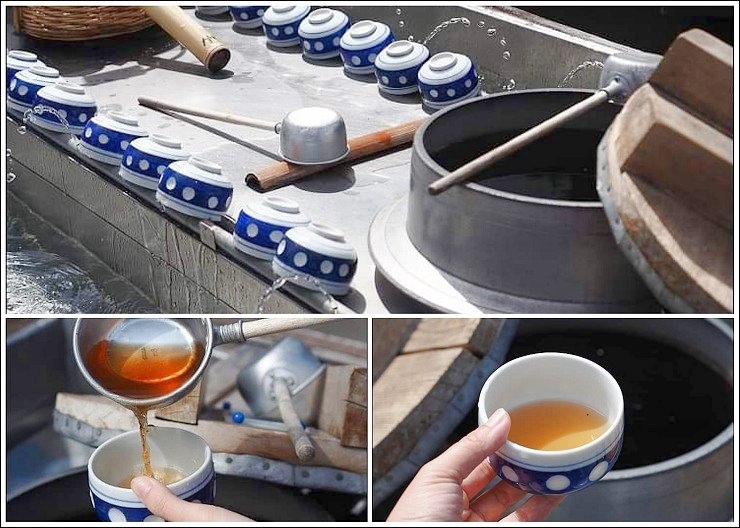 第一站來到萱野茶屋來喝延年益壽的三杯茶,喝第一杯可以延長三年壽命,喝第二杯可以增壽六年,喝三杯就能長命長歲,當然要排進行程讓大家活到老玩到老!蘋果汁還有大半顆新鮮蘋果,豐富的維他命吃進去感覺自己都變年輕有活力!