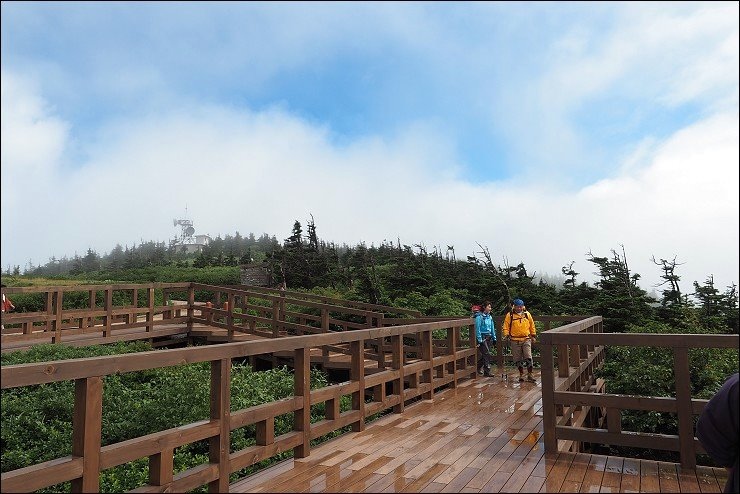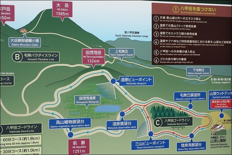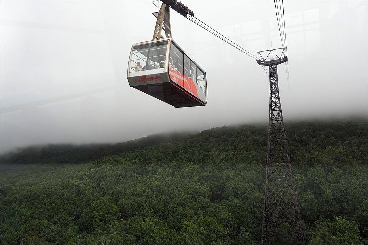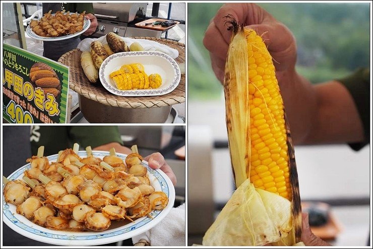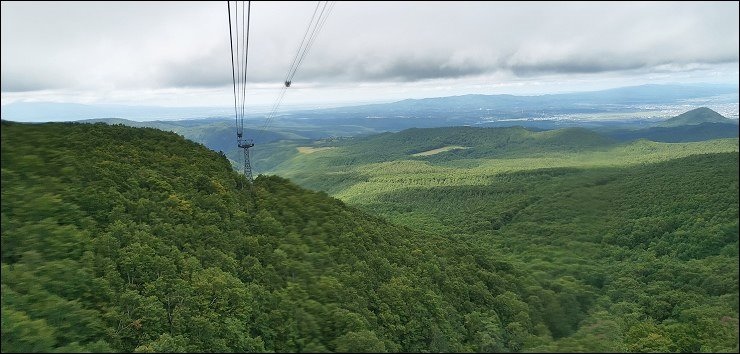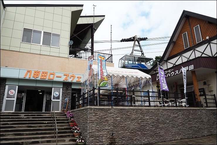 接著來到八甲田,這裡冬天是滑雪聖地,光要坐上纜車就要排隊等了二班車,沒有滿滿的滑雪遊客,也不用穿著保暖又厚重的衣服,玩起來特別輕鬆,不過夏天山上氣溫還是偏涼,建議還是要帶件防風外套,這樣坐纜車到山頂,可以健行走個半小時的山路,我們幾個女生都穿著短袖,還有人穿短裙,山頂又有點微雨,風又大,我們躲在室內吃東西,這裡的嶽玉米好甜好好吃,大家試吃一小口都掏錢買一整根玉米來啃。
