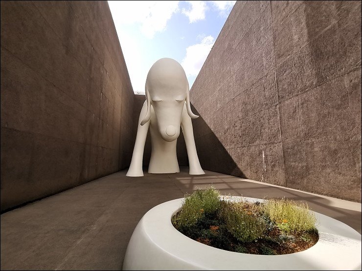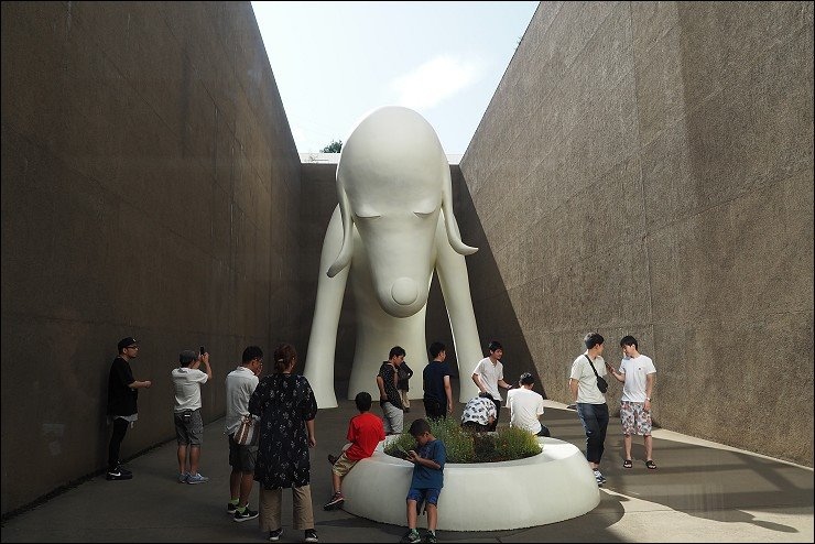 大多人都一定會跟這青森犬合照,是青森縣立美術館的代表性作品,冬天青森犬被大雪覆蓋像是戴上白帽及白衣,夏天牠前面的綠盆栽才露出來,聽說這本來沒有,是大家說要給它一份狗糧,後來才補進來的造景,真可愛。