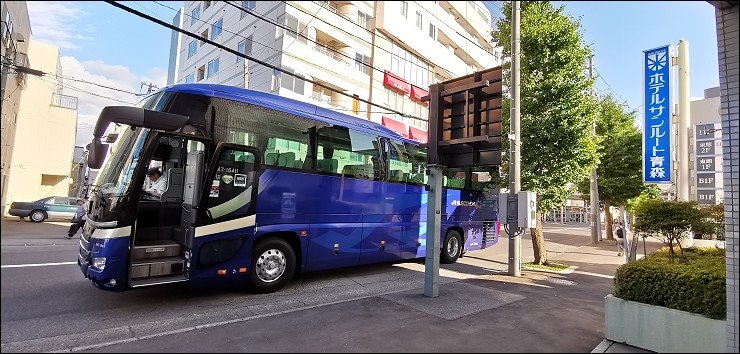 回程觀光巴士除了有停新青森站、青森站,還有三間飯店,我們入住的青森燦路都大飯店 (Sunroute Aomori Hotel)就有送到門口,人跟行李幫我們載到飯店門口,玩了一整天好豐富!