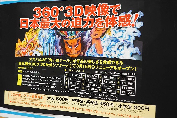 附近就是青森縣觀光物產館ASPAM,我們來這邊看了一場日本最大3D映像,欣賞青森四季之美,360度超大放映牆,有讓人身歷其境的感受,青森一年四季都好美!但因為不能拍照,畫面就留給大家親自去體會吧!