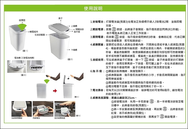💎請注意!本團感應式垃圾桶建議使用鹼性電池,以免造成無法感應/感應不良狀況。