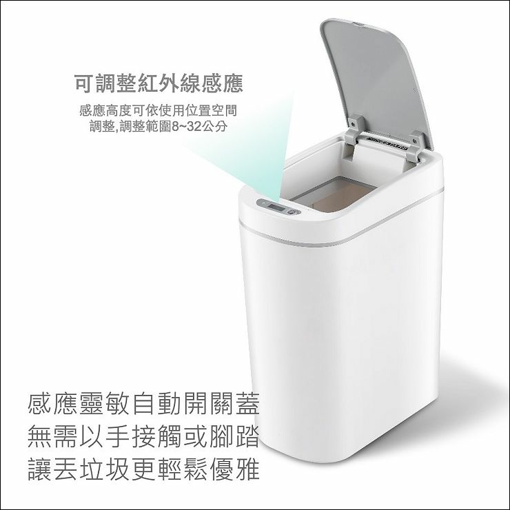 垃圾桶每天要接納各式廢棄物,時時刻刻佈滿細菌、髒污,是極易藏污納垢的“細菌窩”,0.3秒快速開蓋反應,感應式開蓋可避免接觸細菌,密封性良好,防止異味竄出、蚊蟲孳生!