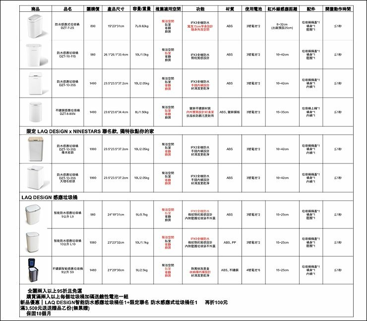 本團所有商品提供保固一年半的服務,維修時請務必提供保卡+發票,這次還談到#獨家多入優惠,兩入95折/3入92折/5入88折且免運,#特定組合再折100元。