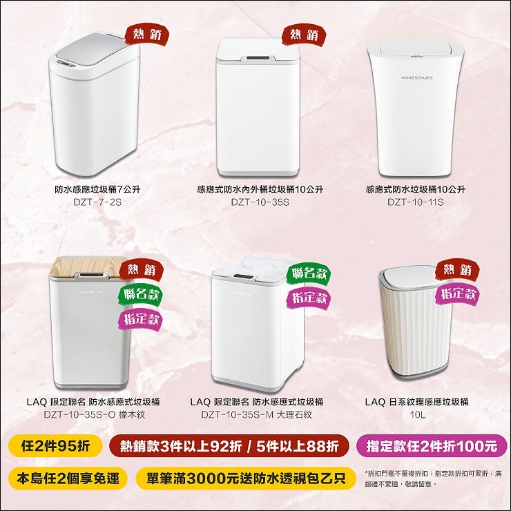 每到年底大掃除或是有人搬新家就有人來問感應式垃圾桶何時要開?如果家裡垃圾桶還沒蓋的要小心!這三年疫情發生後很多習慣要改,除了養成戴口罩勤洗手的好習慣,垃圾桶要有蓋防堵細菌蚊蟲滋生也是重點,上一團就有出強化異味阻隔加裝活性炭收納盒的430不鏽鋼材質,還要再推一下聯名款的橡木紋及大理石紋,真的很有質感~~感應式垃圾桶社長自己用了快五年,真的大推!!而且我自己實際使用了近半年才充電(更換頻率視每個人使用狀況)。垃圾桶是每個家庭不可或缺的存在,走到那裡都需要!時代在進步,現在連垃圾桶都可以是美美又療癒的存在~~尤其社長家目前白色風暴持續蔓延中,暨白色風扇、白色吸塵器、白色咖啡機之後,白色垃圾桶、白色氣炸烤箱緊接著上場!幾年前去看牙醫時,就覺得感應式垃圾桶蠻好用的!零接觸乾淨美型又衛生,但心想應該就是不便宜,還有耗電吧...實際使用過請注意:這種感應式垃圾桶用了就回不去了喔,免腳踩或手掀,只要手在上面揮一揮就開,真的很省事方便,又衛生低耗電、尤其有蓋(防臭異味飄出),還沒試過的真的要試試!!尤其是家有各種小孩的(包括毛小孩),不用擔心他們去翻玩垃圾XD,在這個人人自保防疫的關鍵時刻,真的不要再錯過了~~本團所有商品提供保固一年半的服務,維修時請務必提供保卡+發票,這次還談到#獨家多入優惠,兩入95折/3入92折/5入88折且免運,#特定組合再折100元,既然要換就整個家裡都汰換,包括各個空間配置如客廳廚房臥室衛浴,只是記得廚房衛浴要選防水的。