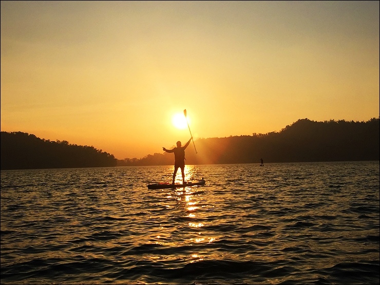 SUP是種由衝浪與傳統手划槳板結合而成的運動項目,從小孩到老人都適合參與,相較於衝浪,玩法也更加多元,包含跑板、原地打轉及跳躍等。教練帶著體驗的旅客,經過涵碧半島的各個景點,環繞邵族祖靈聖地拉魯島周圍,在湖面上靜候從水社大山探出的日出美景。考量安全問題,SUP與環潭遊艇時間錯開,安排在日出及日落時段,讓旅客能夠潭面上迎接晨曦及感受斜灑夕陽,體驗不同滋味。