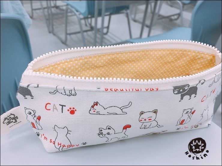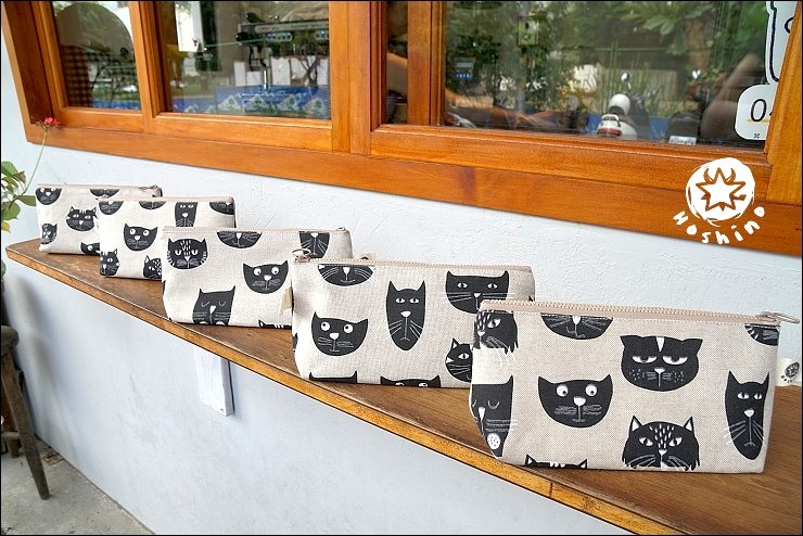 裡面配的是米色防水布,外面配的是黑色尼龍拉鍊,我自己雖然不是貓咪控,但連我都對這款貓咪布情有獨鍾,甚至一拿到成品立馬再追加這款布