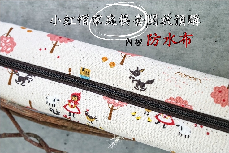 之前就有人說想買來當傘套,有圖有真相,是不是裝進去輕輕鬆鬆,所以社長決定緊急追加一組內裡防水布的家庭筷袋,花色就用小紅帽與大野狼的花色,因為好多人私訊想要這款花色的家庭筷袋(因為沒有樣品所以沒有實品照片喔)。