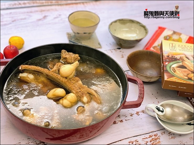 肉骨茶有很多配方與料理方式,每個國家也大不相同,這次團的黃亞細屬重胡椒口味,很適合台灣這種濕冷氣候的冬天,在店內吃雖然也可續湯,但排骨肉無法任性吃到爽(這樣荷包會破大洞XD),也無法加很多配料去豐富,這種湯料包方便簡單又可自由變化延伸,好姐妹已經決定今年開票夜就用一鍋黃亞細肉骨茶搞定那些無賴朋友。