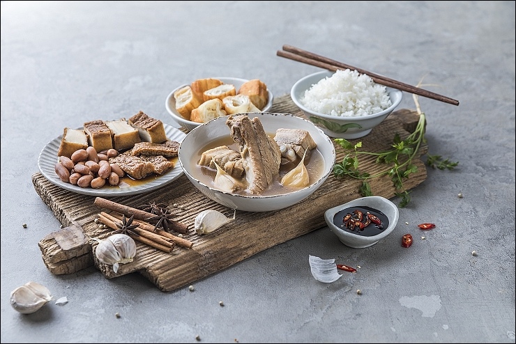 「肉骨茶Bak-Kut-Teh 」(福建語)為新加坡人的國民美食,最初肉骨茶是碼頭工人充飢的家常菜,在早期運用骨頭與藥材、香料熬製成湯,工人在喝完後覺得身體健壯有力,至後期才被廣泛流傳。
