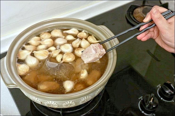 要注意蒜頭不可剝皮,不然一煮會爛,整個湯都會是蒜頭泥~~