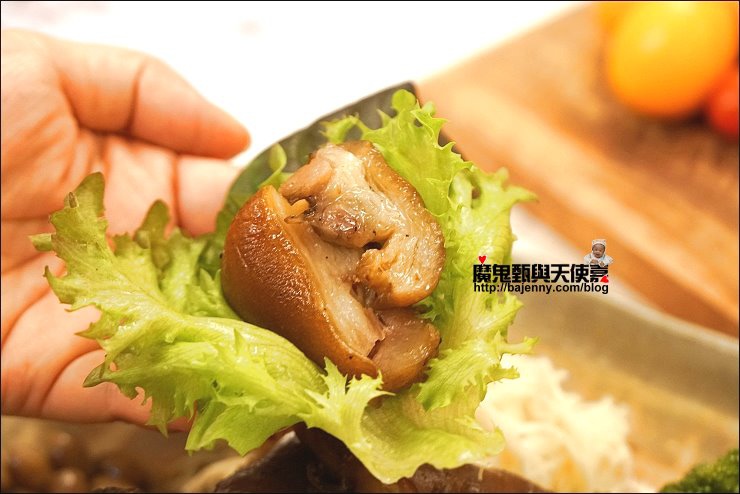 其實豬手除了配麵線、飯,用生菜包也粉不錯喔~~這樣更解膩去油的感覺XDXD