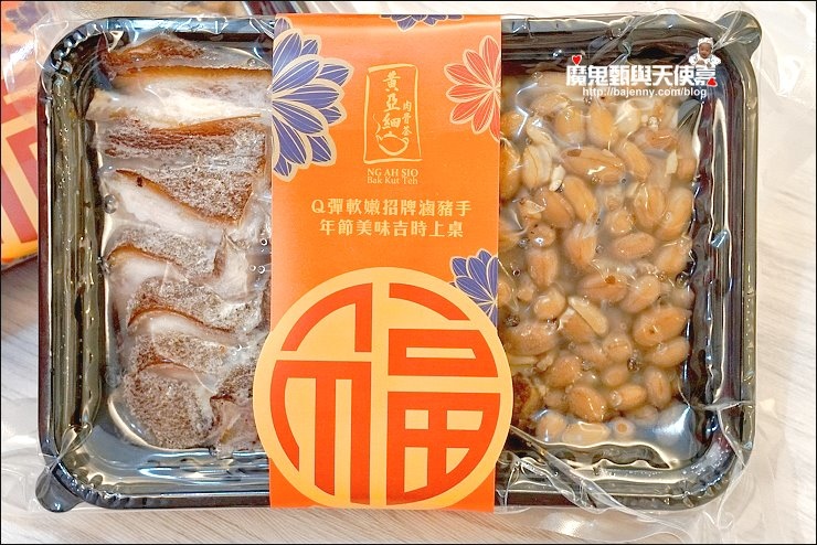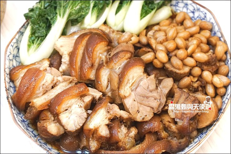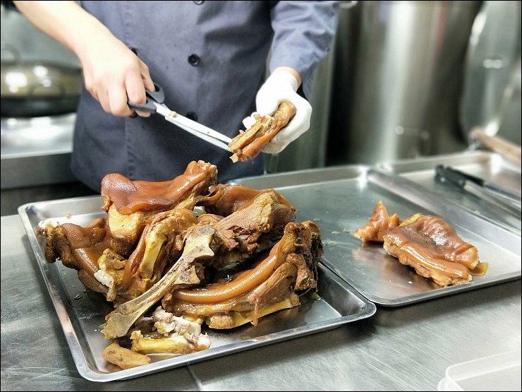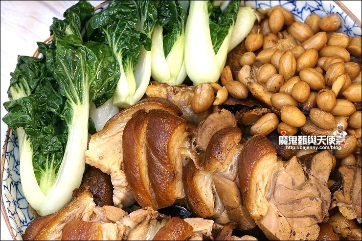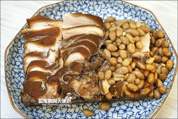 他們家的豬手取其肥油少、膠質豐厚的豬前蹄,並細心去骨(不用費手啃好方便),入口Q彈香濃極為耐吃,花生粒粒飽滿,入味鬆香。